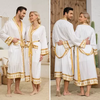 Luxury Baroque Print Long Kimono Robe - Satin Loungewear for Women