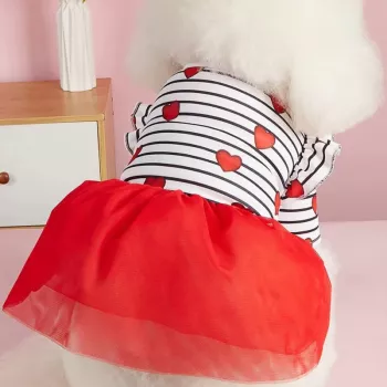 Valentine's Day Stripe and Red Hearts Tulle Dress for Small Dogs and Cats